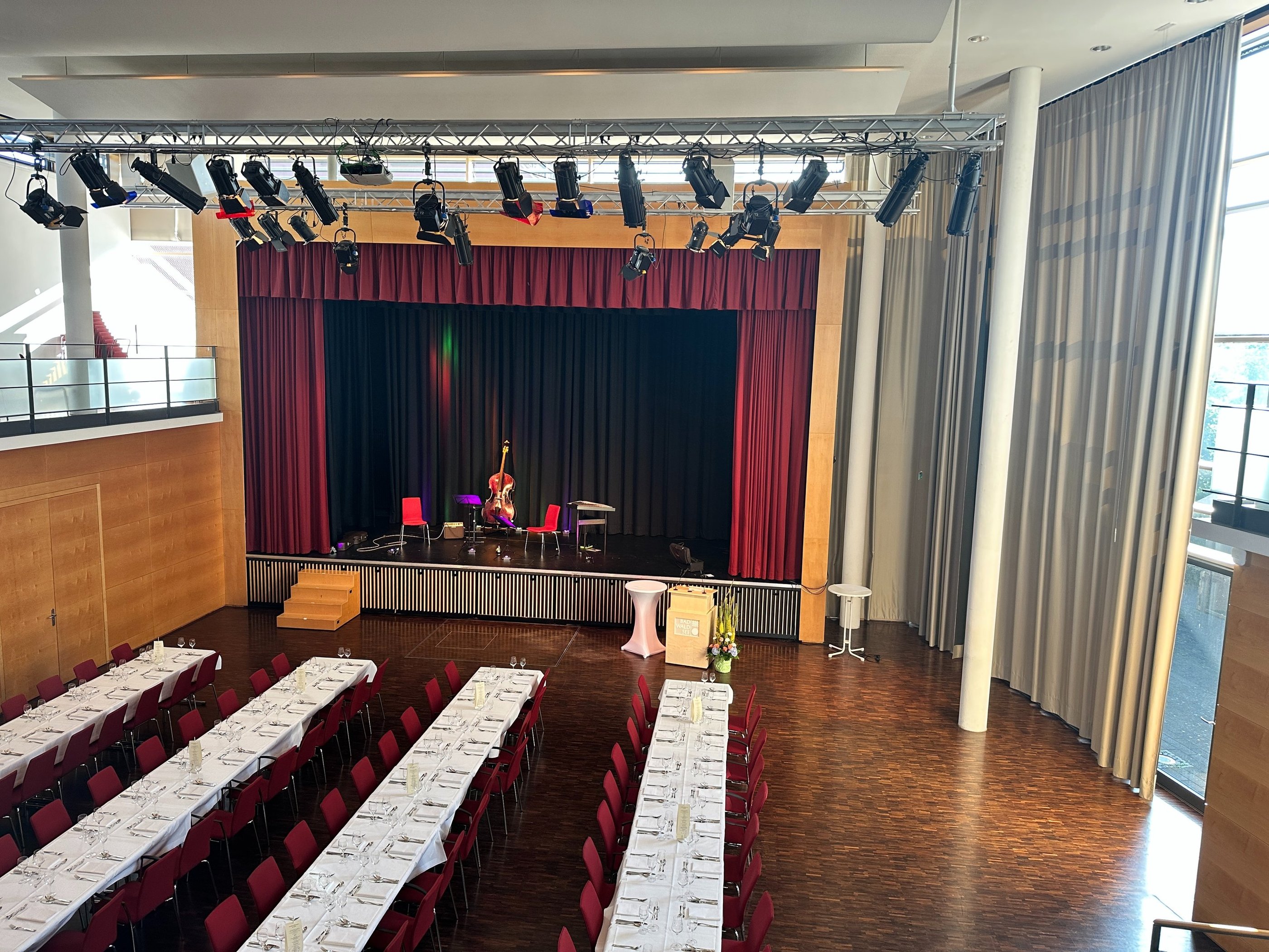 Für einen Auftritt benötigen wir etwa 4x3 Meter Platz sowie mindestens eine Steckdose.